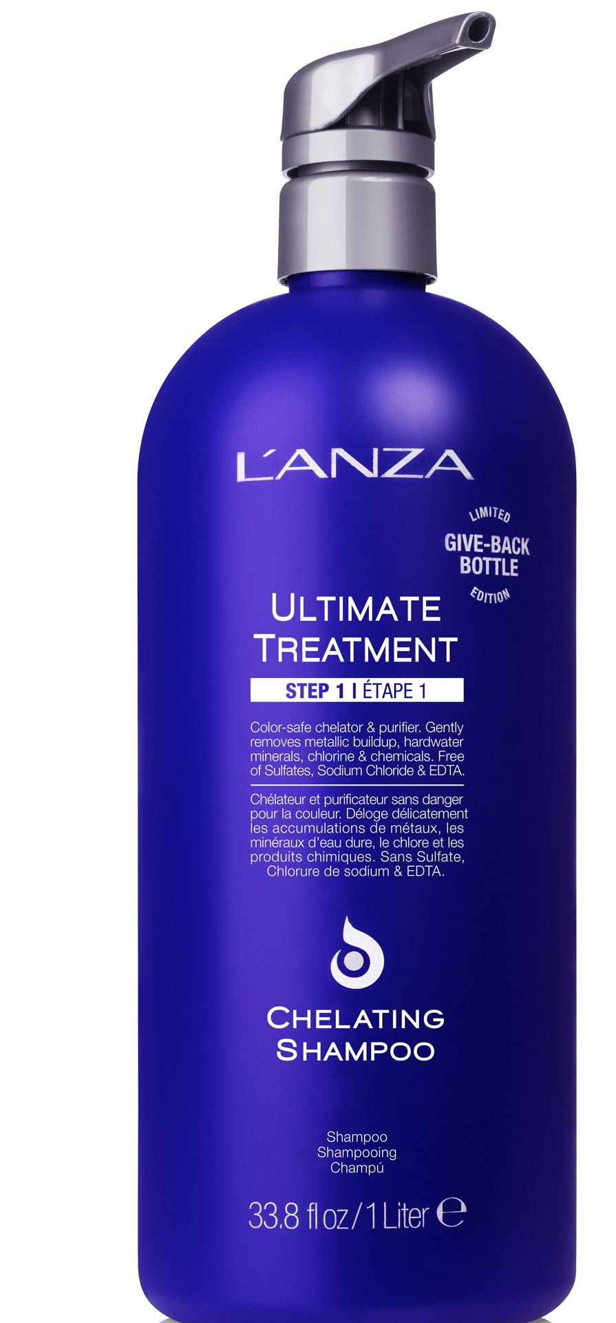 Η εφαρμογή του Chelating Shampoo αφαιρεί τα σκληρά μεταλλικά στοιχεία όπως το νερό, το χλώριο, τα συσσωρευμένα μέταλλα και άλλα κατάλοιπα. Είναι ένα πολύ απαλό, ασφαλές για το χρώμα σαμπουάν, χωρίς θειικό και χλωριούχο νάτριο, ενώ περιέχει και φυσικό Gugo Bark για πλούσιο αφρό. Ο χηλικός παράγοντας φυτικού οξέος που διαθέτει, προέρχεται από οργανικό ρύζι αντί του EDTA, το οποίο σημαίνει ότι είναι αποτελεσματικός και πιο ασφαλής για βαμμένα μαλλιά.